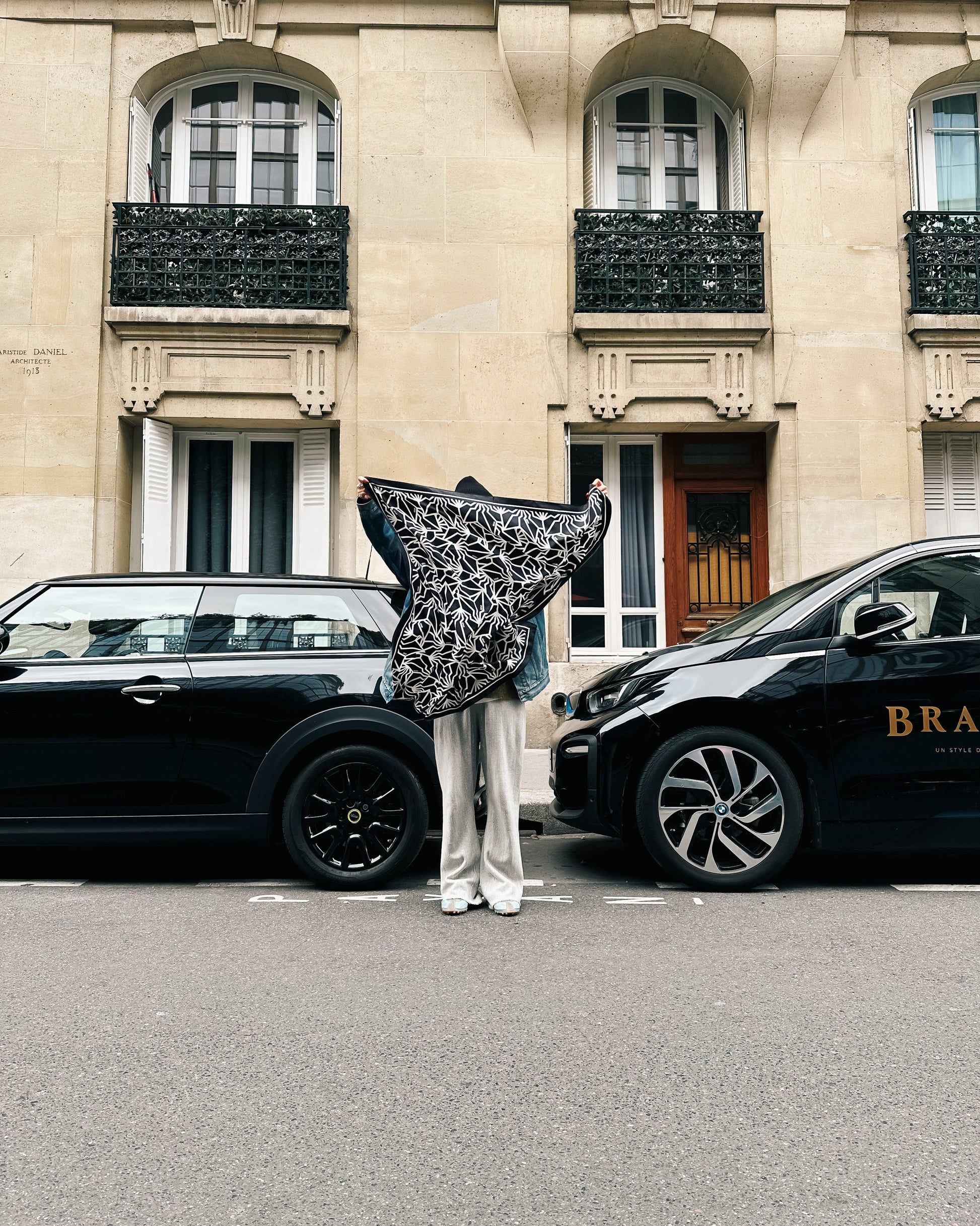 マットな質感とほどよい厚みでエレガントに寄りすぎず、かっこいい柄でデニムやTシャツにもすっと馴染むスカーフが完成しました✨✨