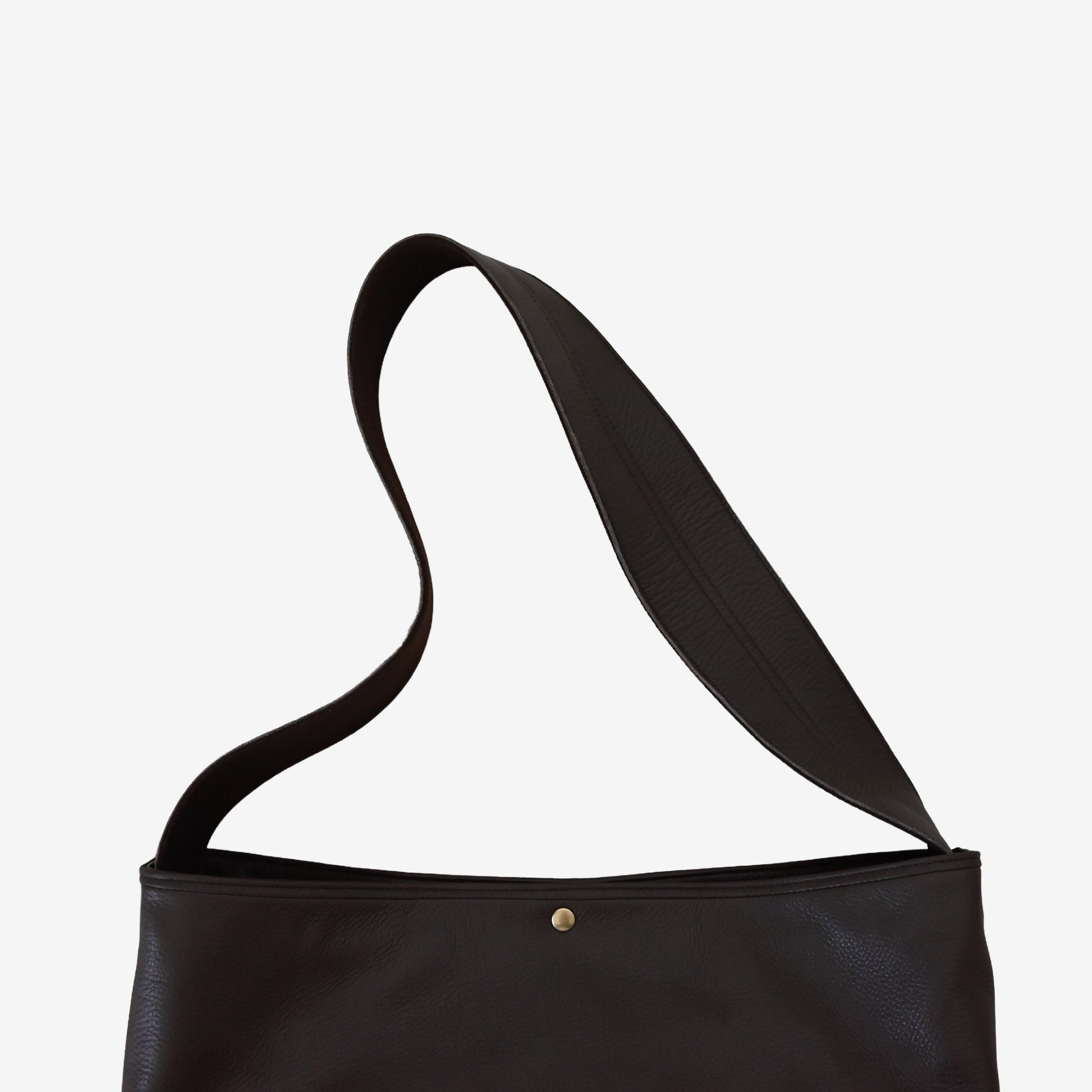 広めの底マチと太ショルダーで、容量たっぷり。斜めがけ・肩掛けどちらでもバランス良く持てるようデザインしました。