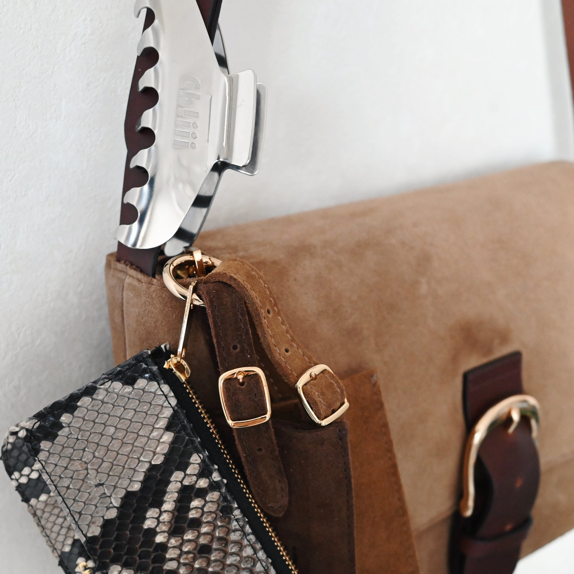 しっかり髪をフックアップ出来る3D形状とクシ部分の角度に非常にこだわったデザインです。それに伴い、バネの強度、ホールド感とも申し分ない完成度になりました。チャームとしてバッグにもつけてほしかったので強度にはかなりこだわりました✨
