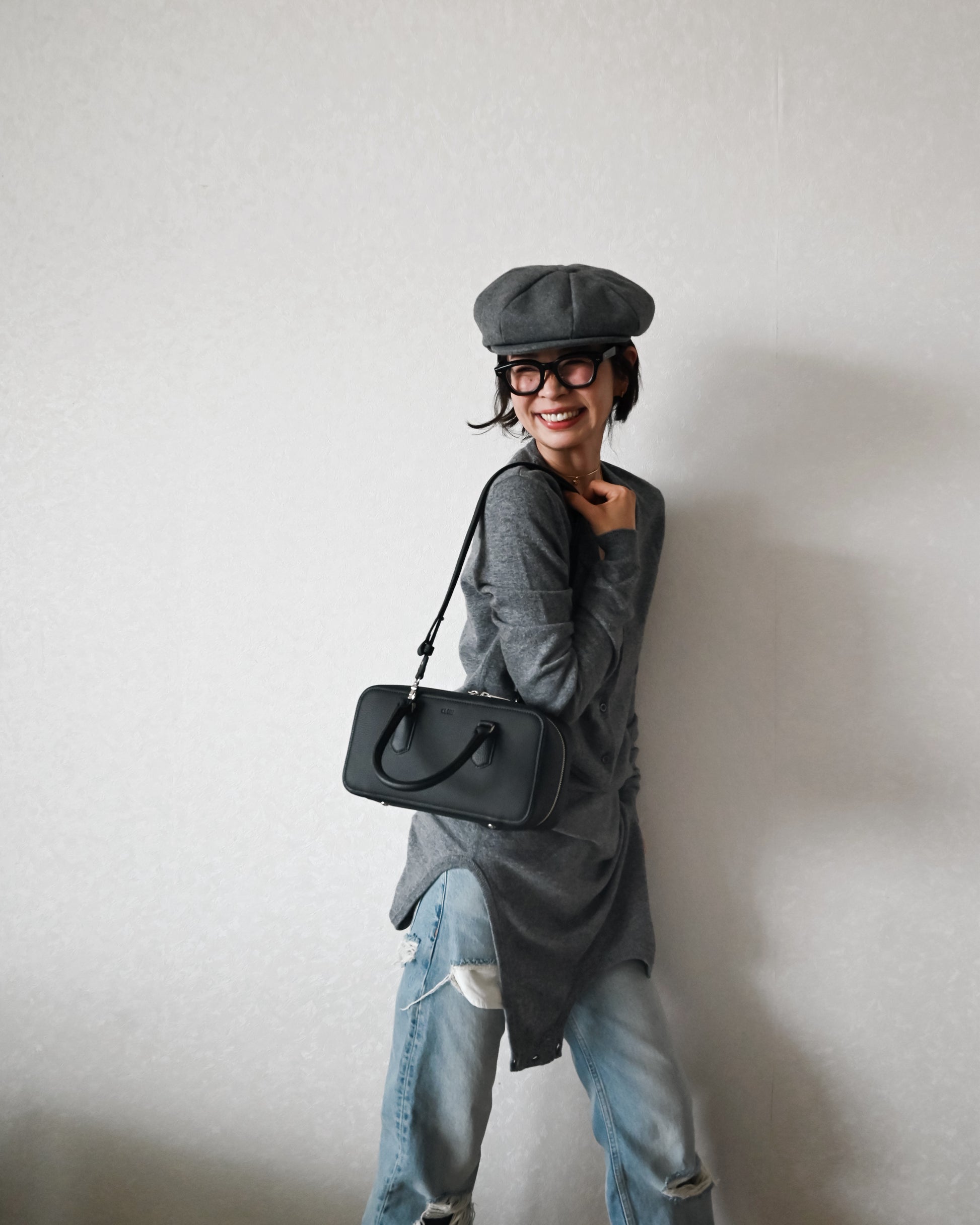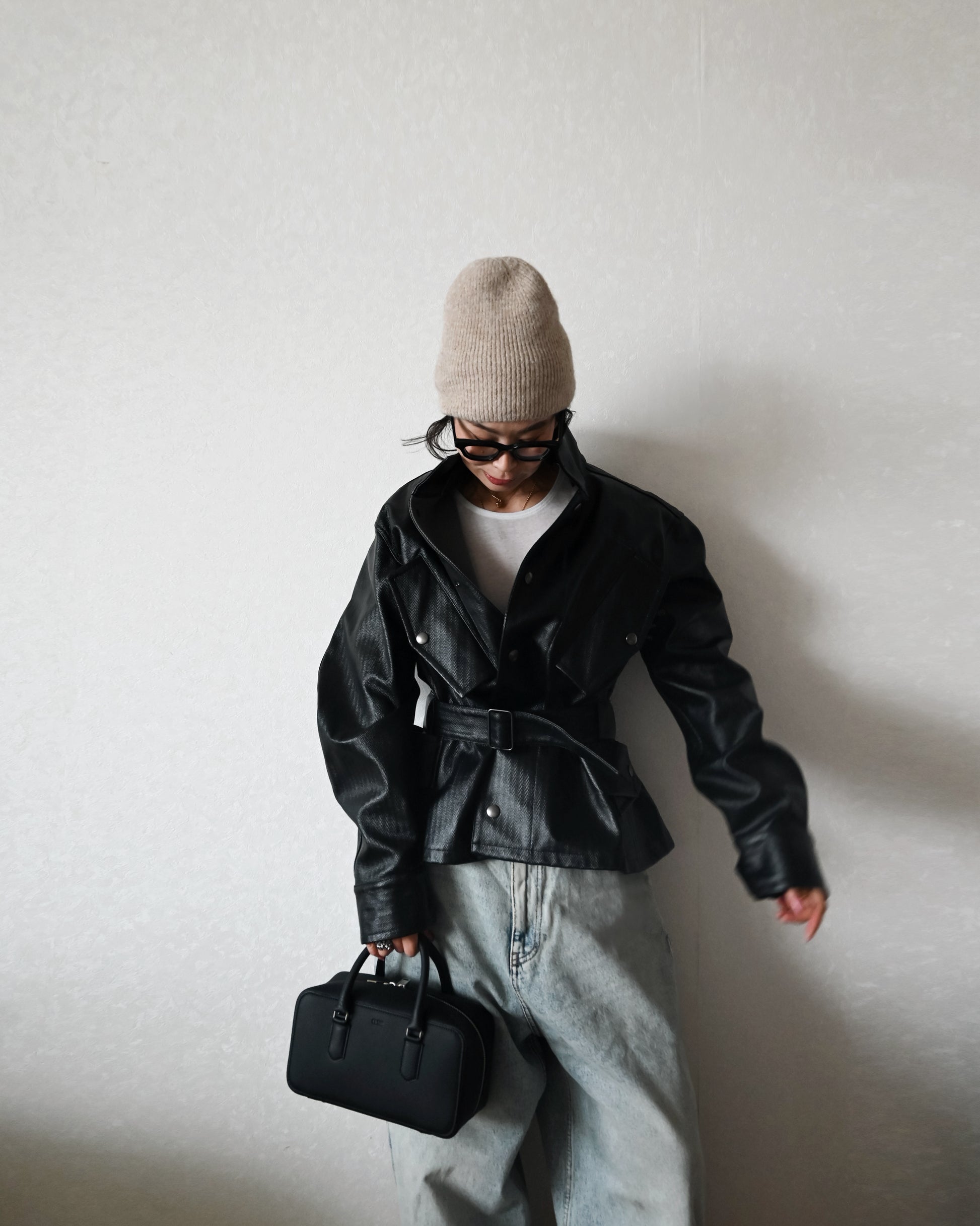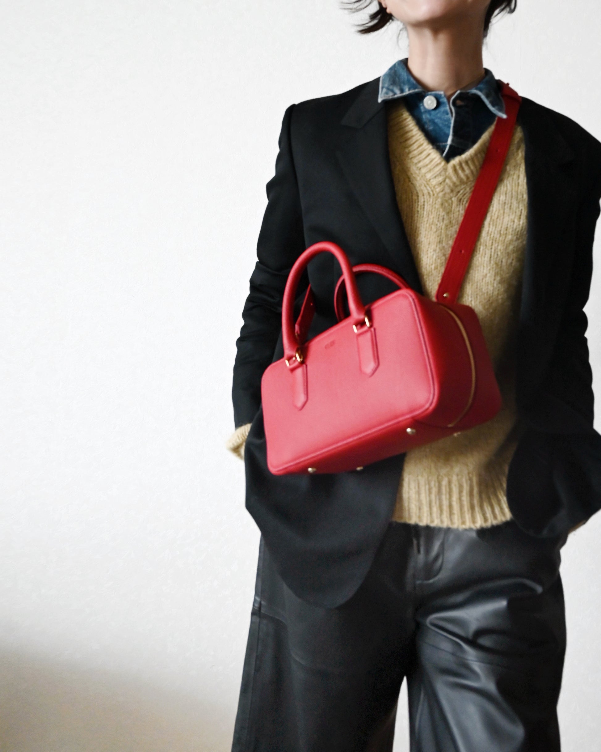 シンプルさの中にモード感のある個性的な雰囲気。取り外しの出来るショルダーも付属し