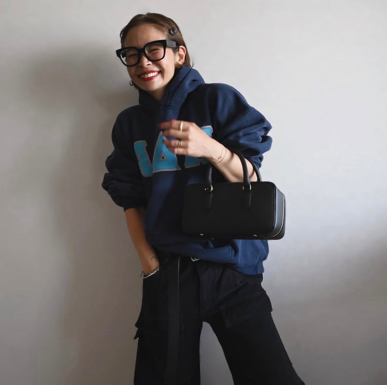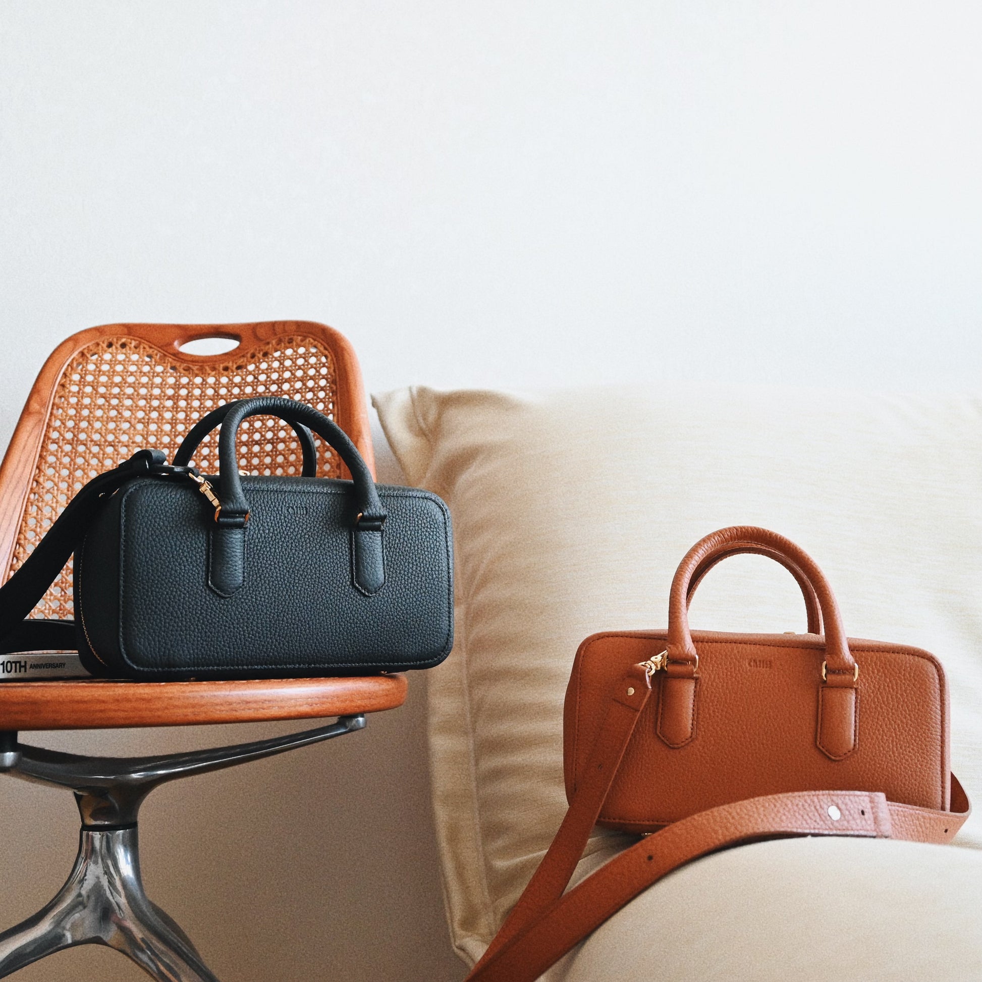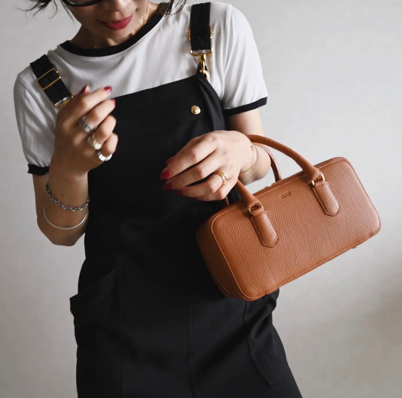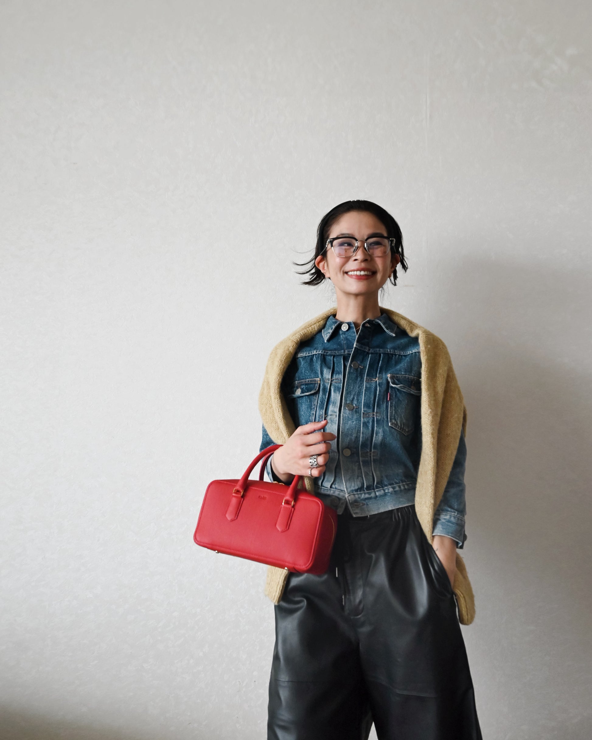 シンプルさの中にモード感のある個性的な雰囲気。取り外しの出来るショルダーも付属し