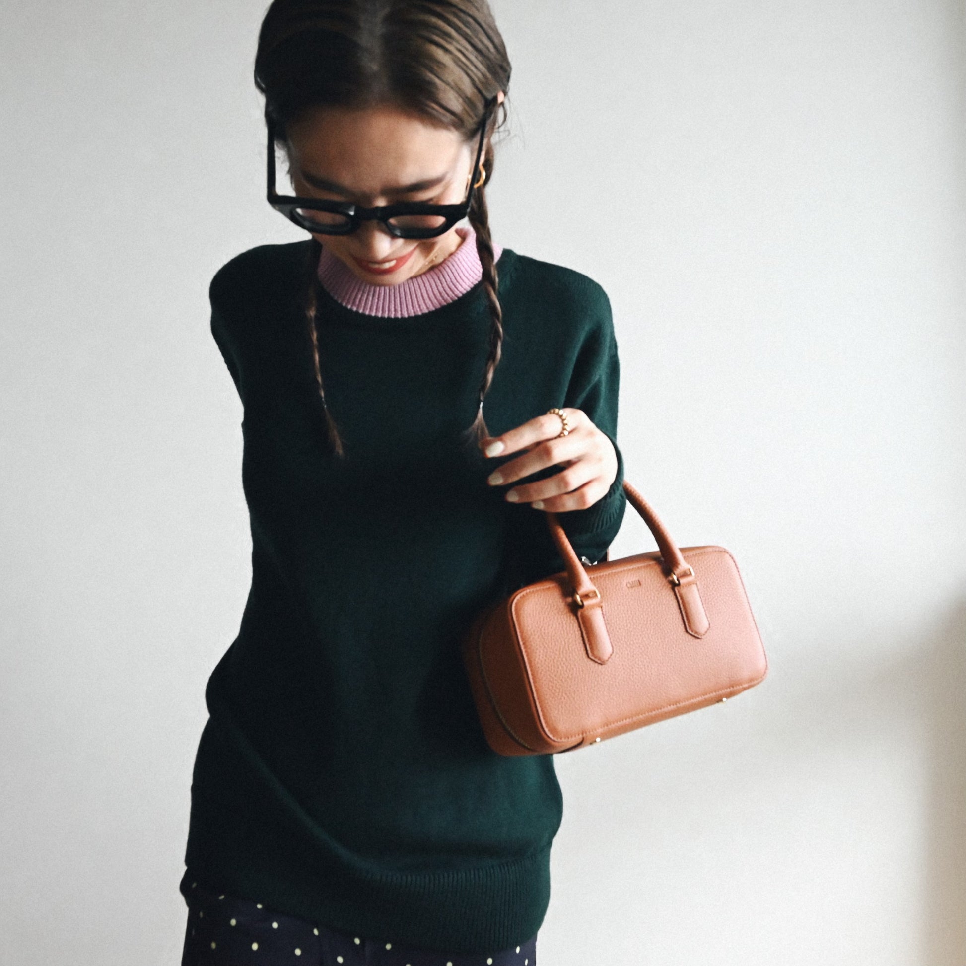 マチを広く、ハンドルはごく短め。