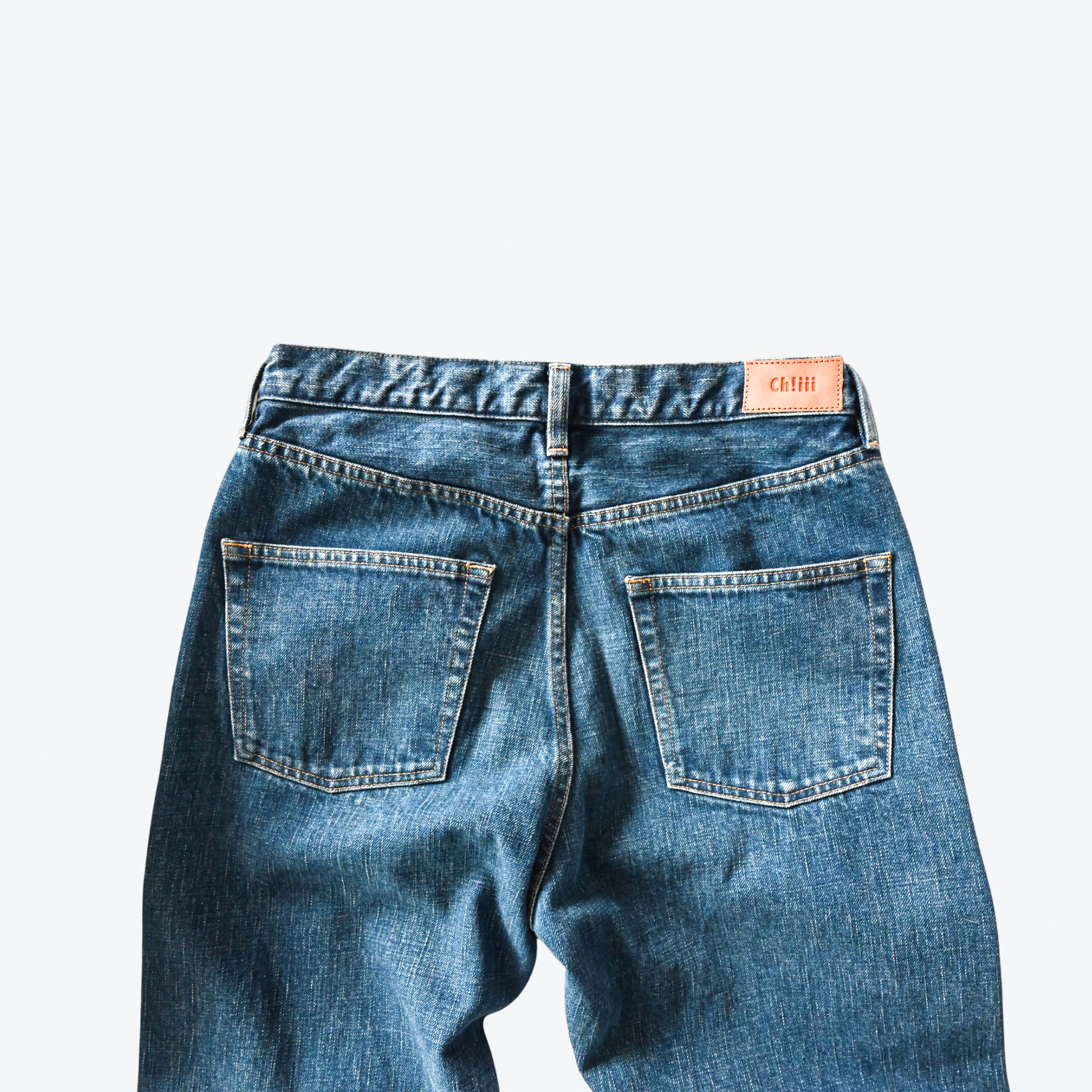 ビンテージデニムをリメイクした雰囲気を持たせながら、一般のデニムとは違ったバランスで作成したch!iii5型めのデニムをご紹介させていただきます。