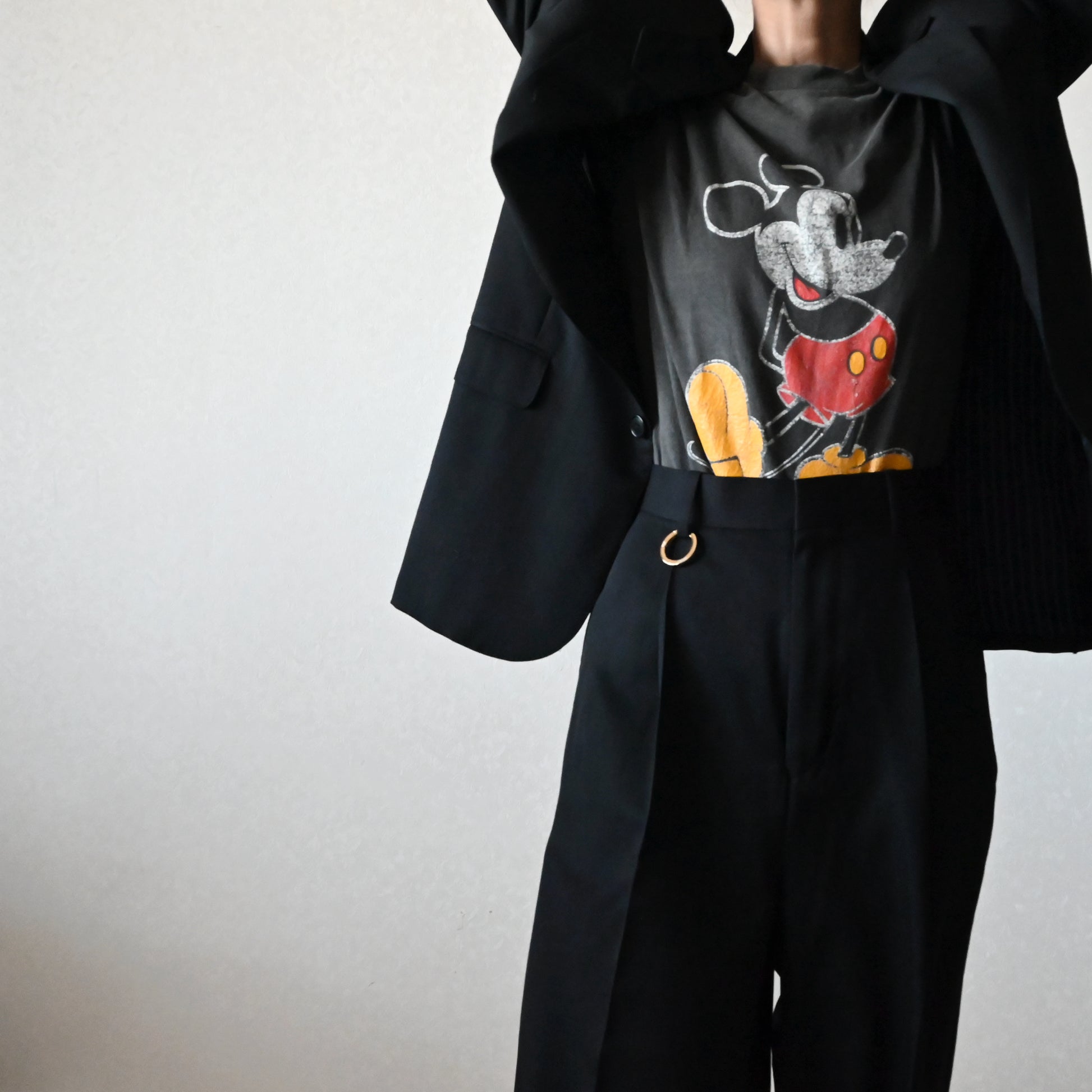 股上深めでスケーターパンツのような軽さもプラスしフォーマルな構築性に、ゆるっとした遊び心を合わせた、ch!iiiらしい一着です。他にはない特別な雰囲気、ぜひ楽しんでください!